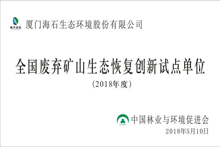 海石生態(tài)為中國(guó)林業(yè)與環(huán)境促進(jìn)會(huì)全國(guó)廢棄礦山生態(tài)恢復(fù)創(chuàng)新試點(diǎn)單位